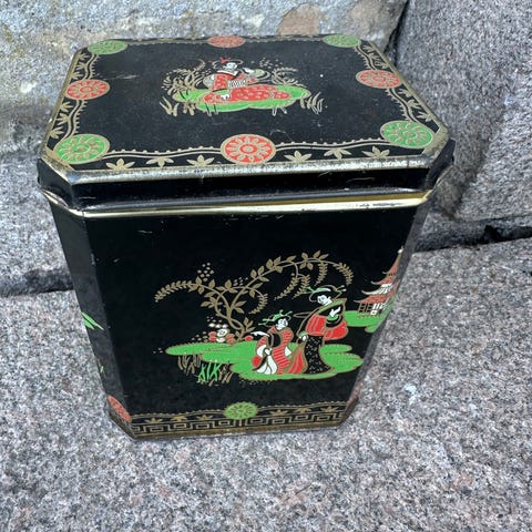 Antik te dåse (str. H. 14 cm. 8,5 x 8,5 cm)