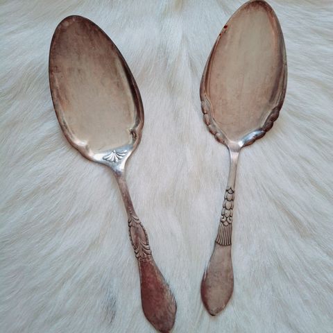 Sættet består af tre sølv kagespader med dekorative håndtag. Hver spade er 17 cm lang og har et skinnende, men lettere ridset blad med et elegant håndtag, der muligvis har et blomstermønster. Disse kagespader er velegnede til servering af forskellige typer bagværk.