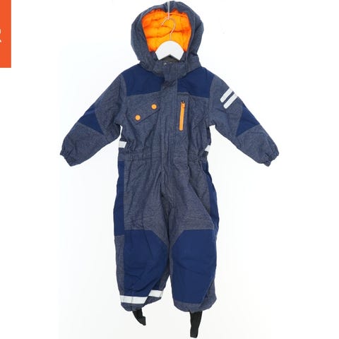 Flyverdragt til børn med hætte. Dragten har en kombination af farver: grøn, gul og blå. Den har elastik i taljen og ved håndleddene for bedre pasform. Lukkes med lynlås og trykknapper foran. Der er reflekterende detaljer på benene og elastiske stropper til at fastgøre under foden, hvilket hjælper med at holde dragten på plads.