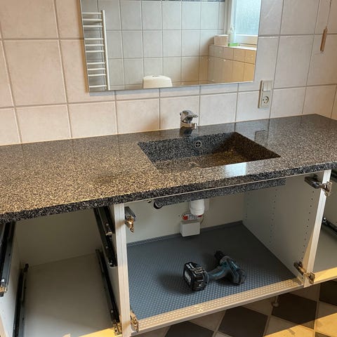 Sælger en brugt bordplade med integreret vask fra Marmoline.
