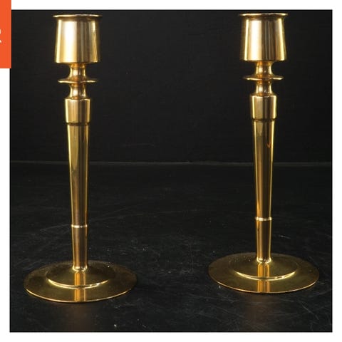 Sættet består af tre ens lysestager i metal med en diameter på 7 cm. Lysestagerne har et åbent design på toppen og en glat overflade. De er lavet af et metalmateriale, sandsynligvis med en messingfinish, hvilket giver dem en gylden farve.