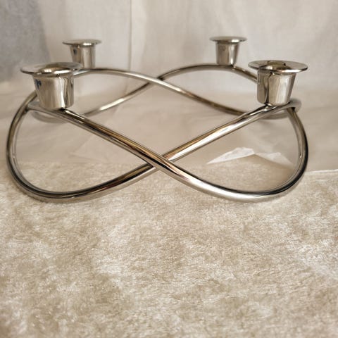 To messinglysestager, der er udformet som store flasketoppe. De har en diameter på 7 cm og er designet med et indviklet, flasketopkantet design. Overfladen er skinnende og gylden, og de er formet til at kunne holde små stearinlys. Undersiden af disse lysestager har en indgraveret tekst, der indikerer et mærke fra Danmark.