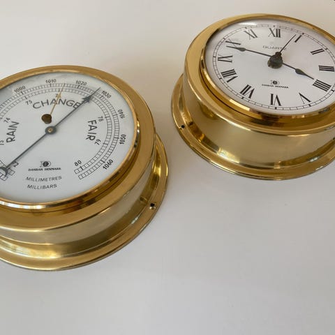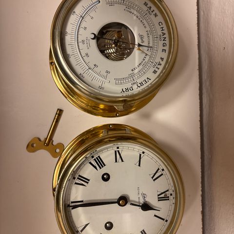 SKIBSUR OG BAROMETER I MESSING fra 1970