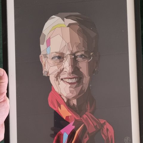 Grafisktryk, SK, motiv: Dronning Margrethe, b: 30 h: 40, Portræt af Dronning Margrethe. Trykt i kun 80 eksemplarer i anledning af hendes majestæts 80 års fødselsdag. Nummeret og signeret af billedkunstner: Simon Klinkby. Trykt på 180 grams fin kvalitets papir. Kan købes i indrammet sort træramme for 400 kr eller uden ramme for 300 kr.