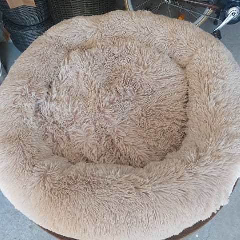 Helt ny/ ubrugt rund pude til hund, kat el. kanin. 60 cm. I dia. Mål ses på foto.