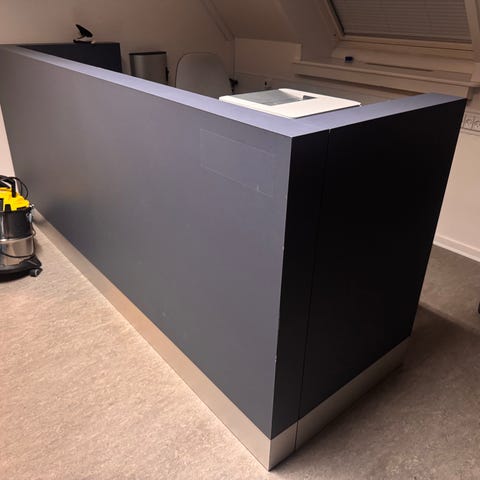 Skranke i kirsebærtræ med manuel hæve/sænke funktion. Består af to sektioner på hver 2m. Bliver nedtaget i næste uge.