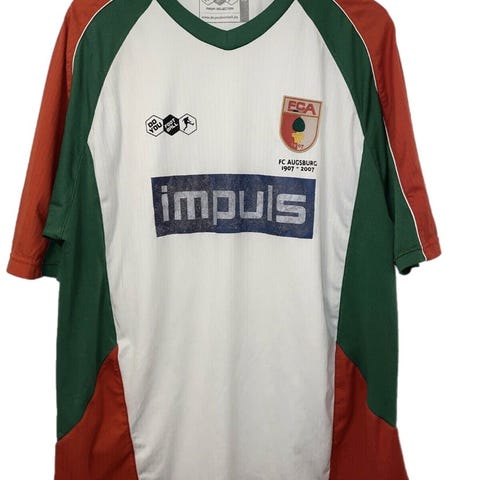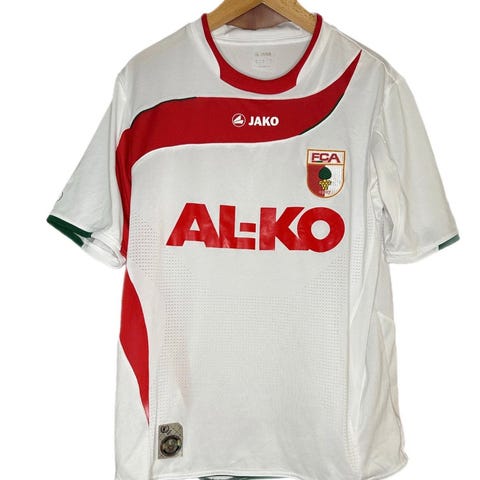 Mizuno FC Augsburg fodboldtrøje i hvid med grøn og rød stribe.