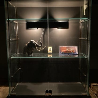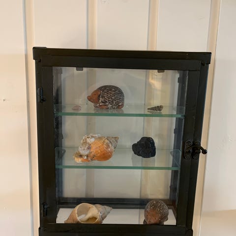 Lille vitrine skab med glas hylder og låger velegnet til nips ting