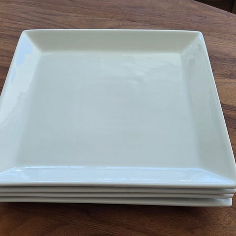 10 stk. sjove hvide firkantede 23 x 23 cm dekorative porcelæntallerkener.