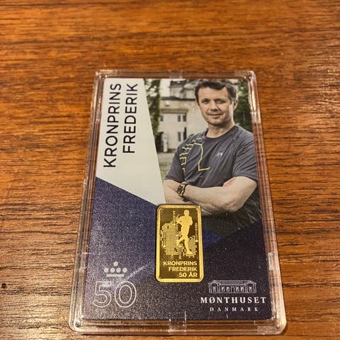 5 grams guldbarre fra Dronning Margrethe 2’s 80 års fødselsdag. Prisen er inkl fragt og fast