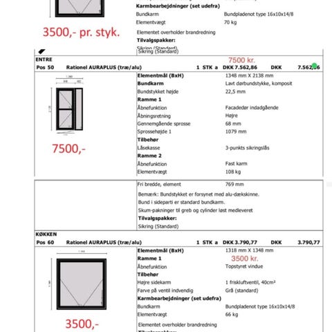 Vinduer Rationel Auraplus - 5 stk.- Hvid Træ/Alu.- Sidehængte 3 venstre og 2 højrehængte udadgående-Mål 598 x 1183 mm.