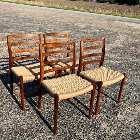 Niels O. Møller 6 spisebordsstole i teak. 2 med armlæn. Model 75