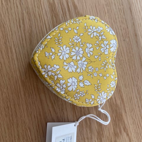 Helt nyt smykkeskrin fra Bon Dep, har fået det i gave, men har et andet i forvejen. Liberty Fabric Fields Flowers udenpå og grå velour indeni.