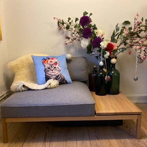 Sofaen er pæn stand, ca halvandet år gammel. Har lidt i det ene hjørne.