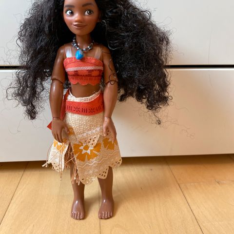 Disney Vaiana Moana dukke-38 cm med mørkt hår, iført rød og beige kjole med blomst i håret. Dukken er designet som en figur til børn og kan anvendes til leg og samling.