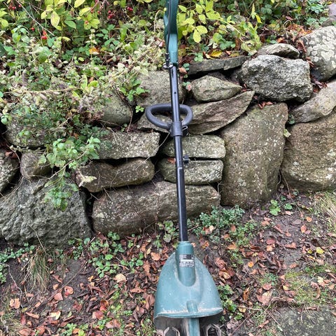 Greenworks elektrisk havefræser med håndtag for nem betjening. (man må gerne få hækklipperen med uden ekstra beregning og også stikdåsen - alt skal ryddes, da det er flyttesalg)