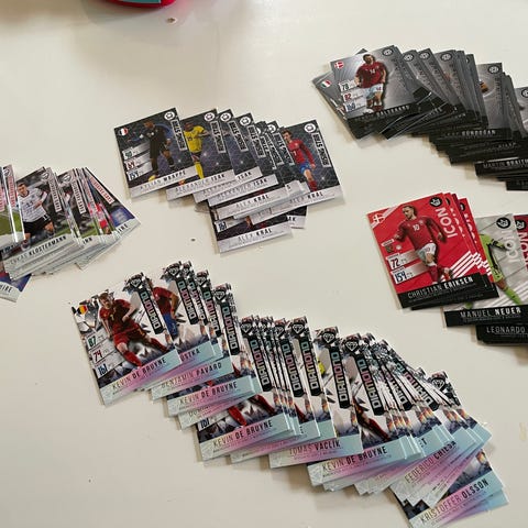 Panini Euro 2020 Adrenalyn Nordic Edition samlekort med forskellige fodboldspillere. Indeholder kort med spillere fra flere nationale hold