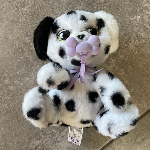 Spotty er en charmerende dalmatinerhvalp, designet til at fange dit barns hjerte og stimulere deres fantasi. Med sine øjne, der åbner sig, når sutten fjernes, og autentiske hvalpelyde, bringer Spotty en realistisk oplevelse ind i hjemmet. Dalmatineren er fremstillet af blødt materiale, der er trygt for børn at kramme og lege med. Let at bære rundt på i den medfølgende svøbepose, så Spotty kan være en del af alle dagens eventyr og venskabsstunder. Dette legetøj styrker også børns omsorgsevne, når de passer og putter Spotty. Perfekt til interaktive lege, understøtter det familiens hyggestunder og barnets sociale udvikling.