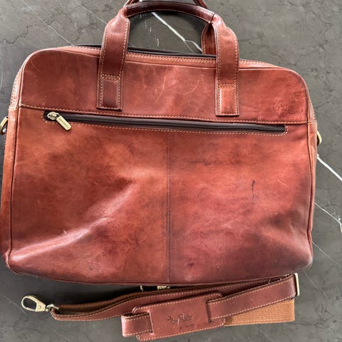 Tony Perotti skuldertaske i sort læder, justerbar skulderrem, forside med trykknap/magnetlukning og på bagsiden stor lynlåslomme. Indvendigt helforet med beige stof, og med flere rum til opbevaring. Nypris 3775 kr