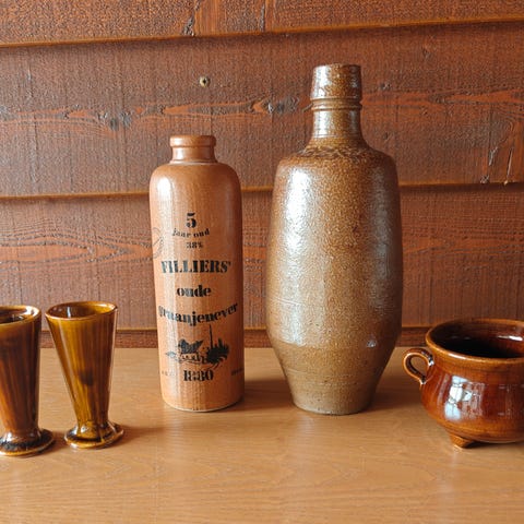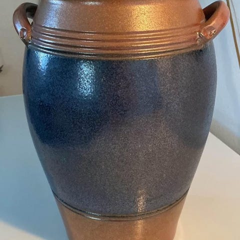 Vase og krukke, vasen er 15 cm høj, krukken 10,5 cm høj 16,5 cm dia - ialt 150kr