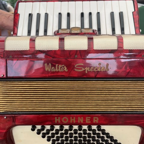 Hohner Blues Harmonica Set, som indeholder: Syv diatoniske mundharmonikaer i forskellige tonearter (G, A, Bb, C, D, E, F). Et praktisk og solidt, polstret etui til opbevaring. Designet til begyndere, der ønsker at lære blues, rock eller country musik. Hver mundharmonika er af "Bluesband" modellen. Fin og ren stand.