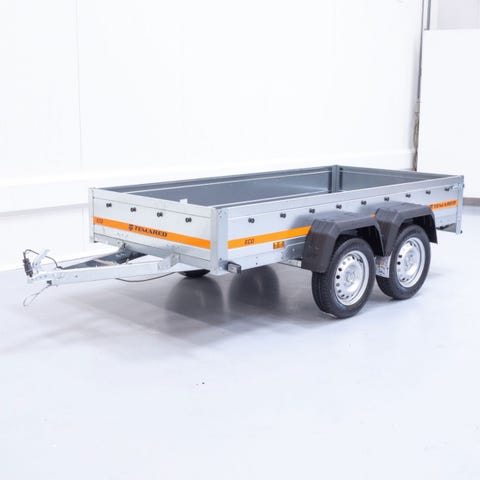 Anssems PLT 1350.251 er en lille boogie trailer med mange formål. De nedfældelige/aftagelige aluminiums side og bagklap gør det muligt at læsse og aflæsse uden besværet med at løfte godset over siderne. Lille adræt boogietrailer der er nem at komme rundt med.