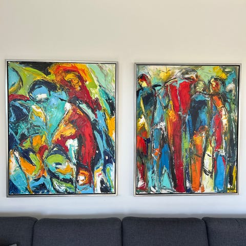 Super godt maleri af H.B.A. Maleriet måler 80 x 100, monteret med svæveramme. Maleriet er fra ikke ryger hjem
