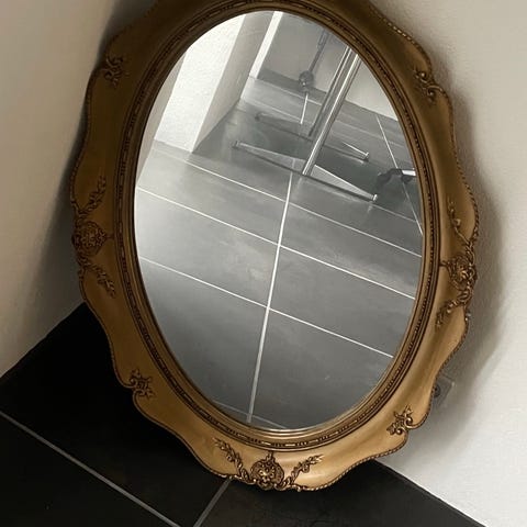 Oval spejl med guldramme og blomstermotiver