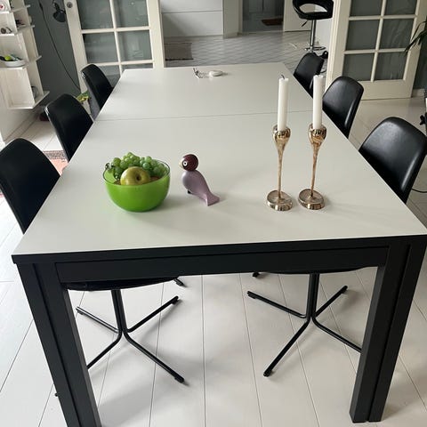 Mærke: Daisy.8 lækker spisebordsstole med armlæn i massiv egetræ med sort læder. Fremstår i pæn stand. Evt kan lev aftales. Pris er pr stol.