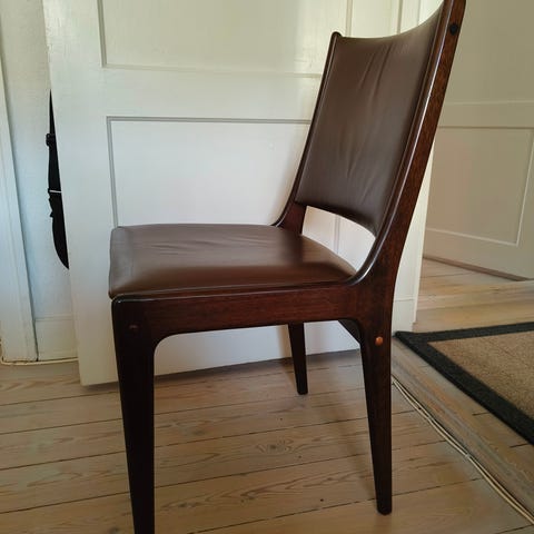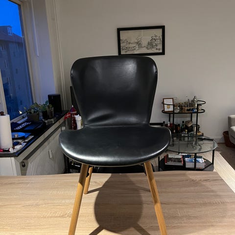 Daisy. 4 lækker spisebordsstole med armlæn i massiv egetræ med sort læder. Fremstår i pæn stand. Evt kan lev aftales. Pris er pr stol.