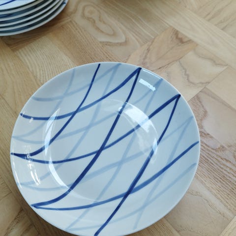 Sælger 6 stk tallerken, 20 cm,den ene har en revne, se billede.sælges samlet for 150 kr ,sendes ikke