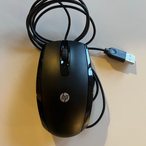 HP kablet mus med USB-forbindelse. Sort farve, standard størrelse. Velegnet til brug med stationære og bærbare computere.