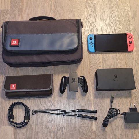 Nintendo Switch spil konsol med tilhørende beskyttelsesetui.