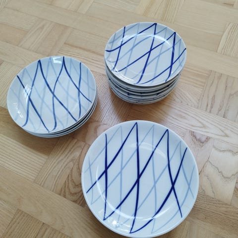 Sælger 11 stk kage/side/dessert tallerken , 17 cm , sælges samlet for 300 kr sendes ikke .