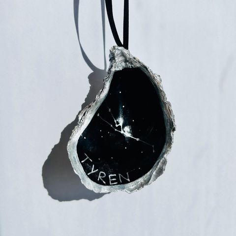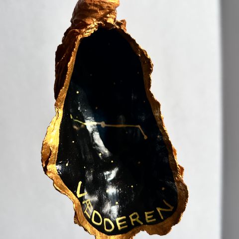 Smukke østers skaller til en gren, konfirmation, fødselsdagsgave, bryllup, guldbryllup, værts gave, Adventsgaver. Håndmalede med finish og guldfarve på bagside.
