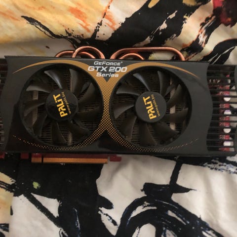 Palit GeForce GTX 460 grafikkort med dual-fan kølesystem. Grafikkortet har flere video-udgange inklusive DVI, VGA og HDMI, og er designet til brug i stationære computere.