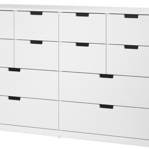 IKEA Nordli kommode i hvid med otte skuffer. Kommoden har mål på 160 cm i bredden, 47 cm i dybden og 99 cm i højden.
