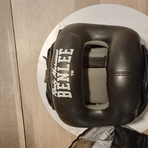 Leone boksehjelm i sort farve. Hjelmen er designet til at beskytte hovedet under boksetræning og kampe.