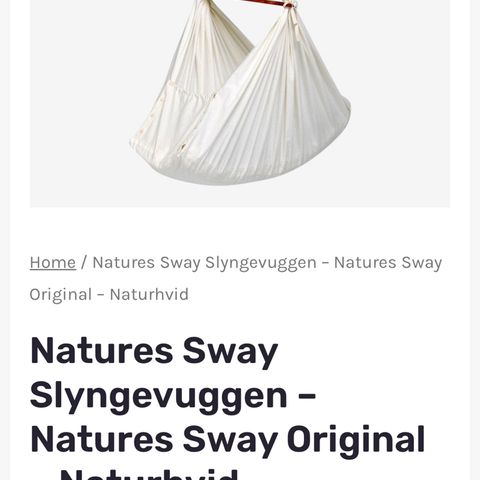 Slyngevuggen er fra Nonomo med tilhørende afstiver-madras som kan bruges når barnet er lidt større. Selve slyngevuggens stof er lidt skævt men kan måske rettes op hvis man bruger lidt til på at spænde det rigtigt. Den virker stadig fint.