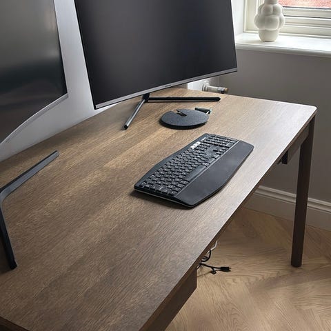 Var det noget med et helt nyt skrivebord der lige er samlet? Slip for turen til IKEA og at skulle samle skrivebordet. Vi sælger dette, da vi skal have et der er større.