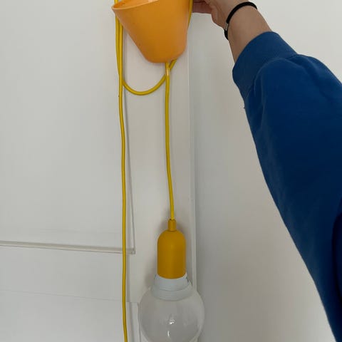 Super flot ubrugt større loftslampe - pendel i lækkert blå hør stof med fatning til stor sokkel