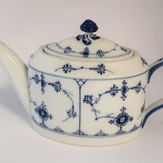 Royal Copenhagen. Musselmalet, riflet. Varmebrik. Model 452.