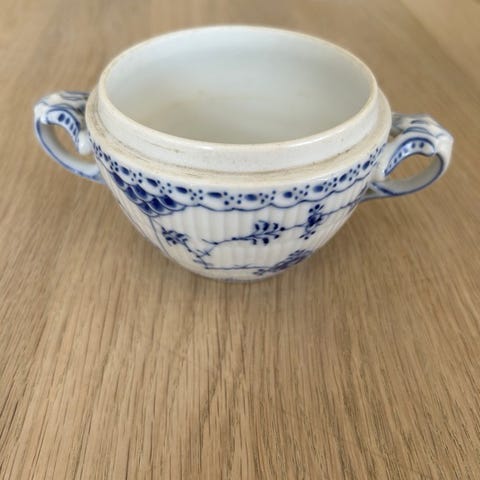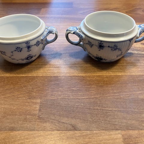 Royal Copenhagen. Musselmalet, riflet. Sukkerskål. Model 244. Højde 11 cm. (2 sortering)