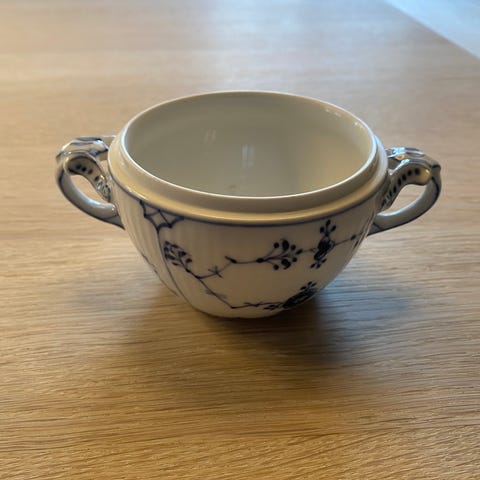 Royal Copenhagen. Musselmalet, riflet. Sukkerskål. Model 244