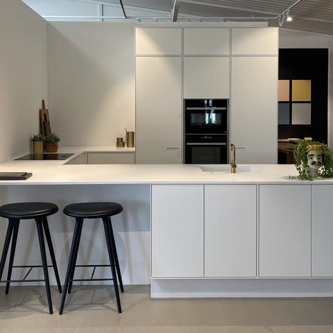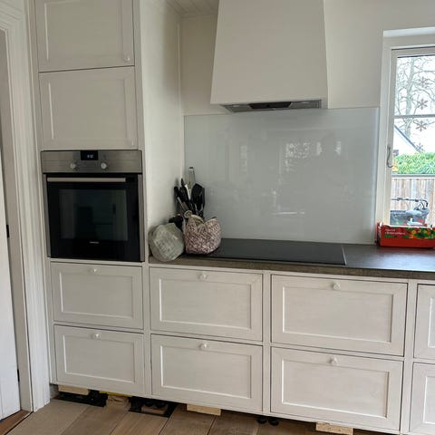 - Højskabe med front Athena i farven Modehvid, dog Athena Dark Nature på vinkøleskab. Inkl. messinggreb 'Piano'.