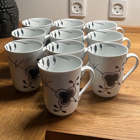 6 stk Royal Copenhagen sort mega riflet kopper, helt nye og stadig i indpakning
