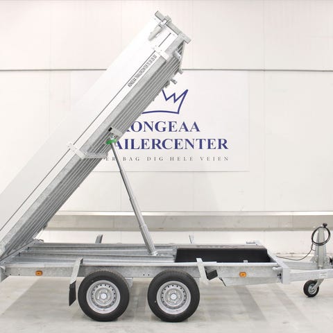 Anssems KSX 2500-E, er en super 3-vejs el-tipper. Det hydrauliske el-tip, betjenes nemt og enkelt, ved hjælp af fjernbetjeningen. Den er med galvaniseret stålbund & sliske magasin. Super tip trailer til både håndværkeren & den private brugere.