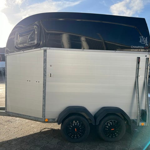 Hestetrailer fra Böckmann i alu med saddelskab. Traileren har plads til 3 heste.