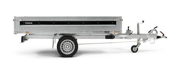 13" hjul under kassen, som gør den meget anvendelig. Vognen har 35 cm høje stålsider som alle er nedfældelige og aftagelige.