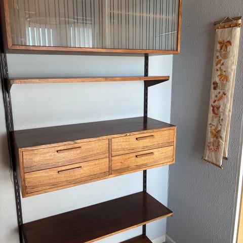 Reolsystem, Retro stil fra 1970'erne palisander art med guld kanter.